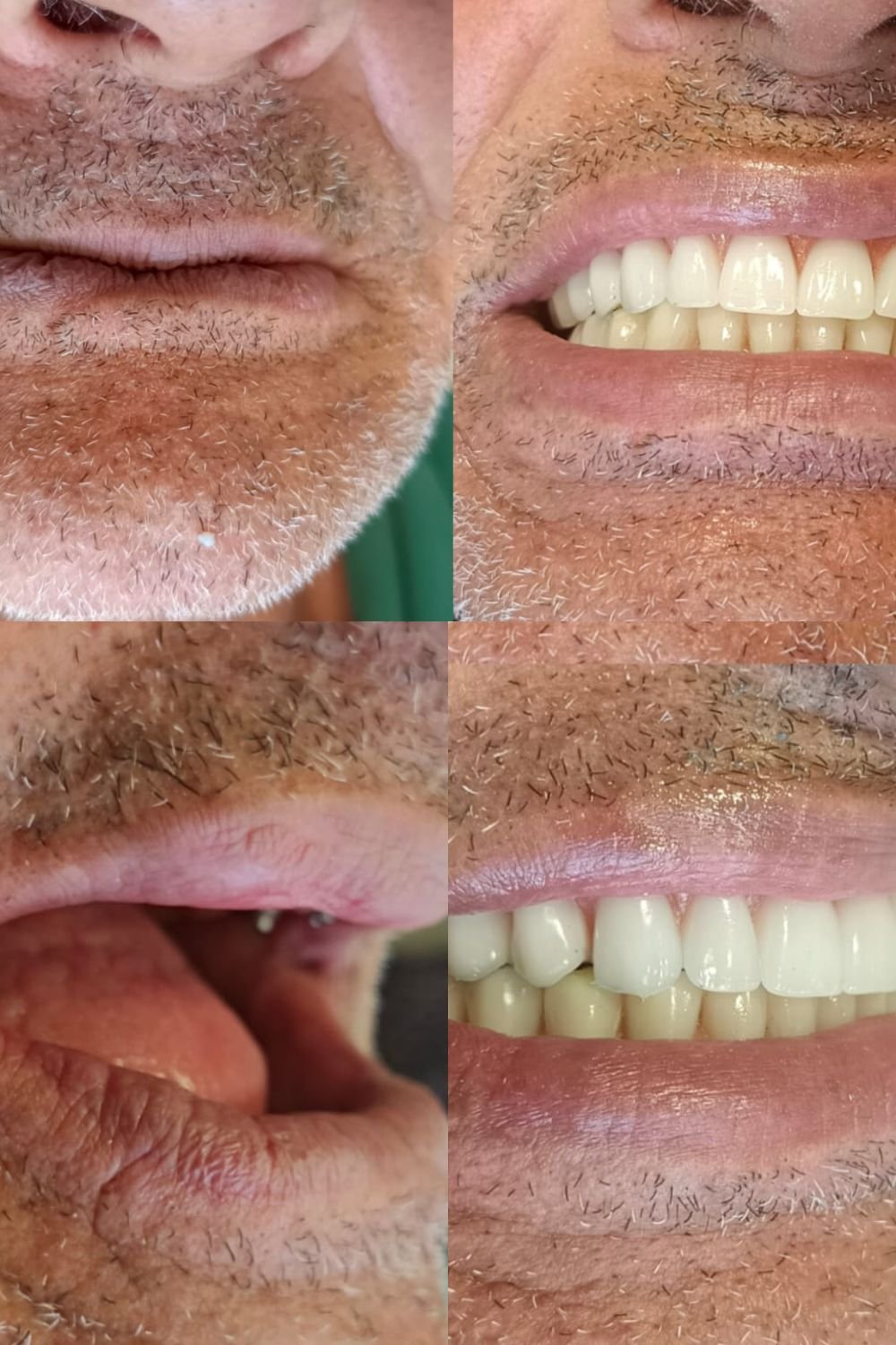 Era muito constrangida com meu sorriso desgastado,manchado,dentes alguns com raiz exposta, fiz as lentes de resina e ficou perfeito meu sorriso😃 muita gratidão pela excelência do trabalho. Deixo o antes e depois.